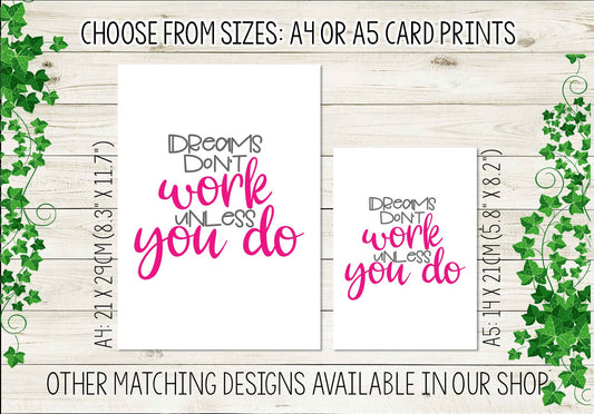 "Dreams don't work unless you do" Empowering Wall Art Print