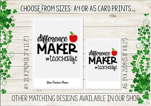 "Difference Maker #teacherlife" Teacher Wall Art Print